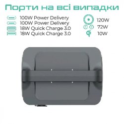 Вихід 4: USB-C PD 5V/3А, 9V/3А, 12V/3A, 15V/3А, 20V/5А (100W max.)