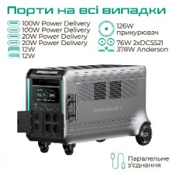 Вихід 5: 2хUSB-C 5V/3A, 9V/3A, 12V/3A, 15V/3A, 20V/5A (100W max на порт, 200W сумарно)