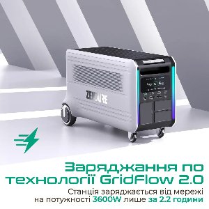 Заряджання за технологією GridFlow 2.0: Станція заряджається від мережі змінного струму на максимальній потужності до 3600W всього за 2.2 години.