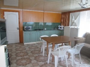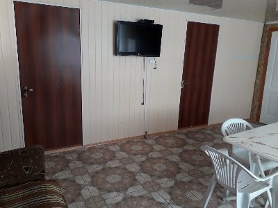 В номере с удобствами кровать, кондиционер, прикроватные тумбочки, плательный шкаф, столик. Большой холл, в холле - холодильник , микроволновка, электрочайник, кухонная мебель(необходимый набор посуды), мягкая мебель, спутниковое ТВ, мойка, газовая плита. Санузел , душ (вода горячая круглосуточно).