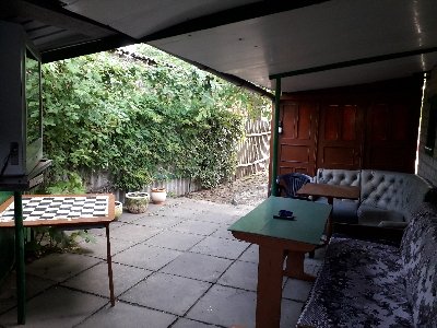 Для эконом во дворе есть кухня, на кухне- кухонная мебель, газовые плиты, микроволновка, электрочайники. Также во дворе расположен санузел. Душевые кабины( летний душ целый день, горячий после 16-00). В беседке расположен телевизор.