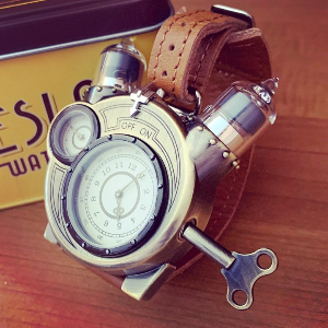 Часы поставляются в стильном металлическом футляре и являются роскошным подарком любому поклоннику стиля стимпанк.