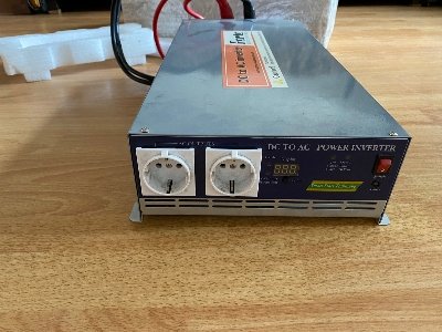 Подключается к наклемникам аккумулятора. Корпус металлический, из алюминиевого сплава. На переднюю панели вынесены 2 стандартных евророзетки и экран с индикацией рабочих параметров. В комплектацию входит комплект силовые кабелей с зажимами.